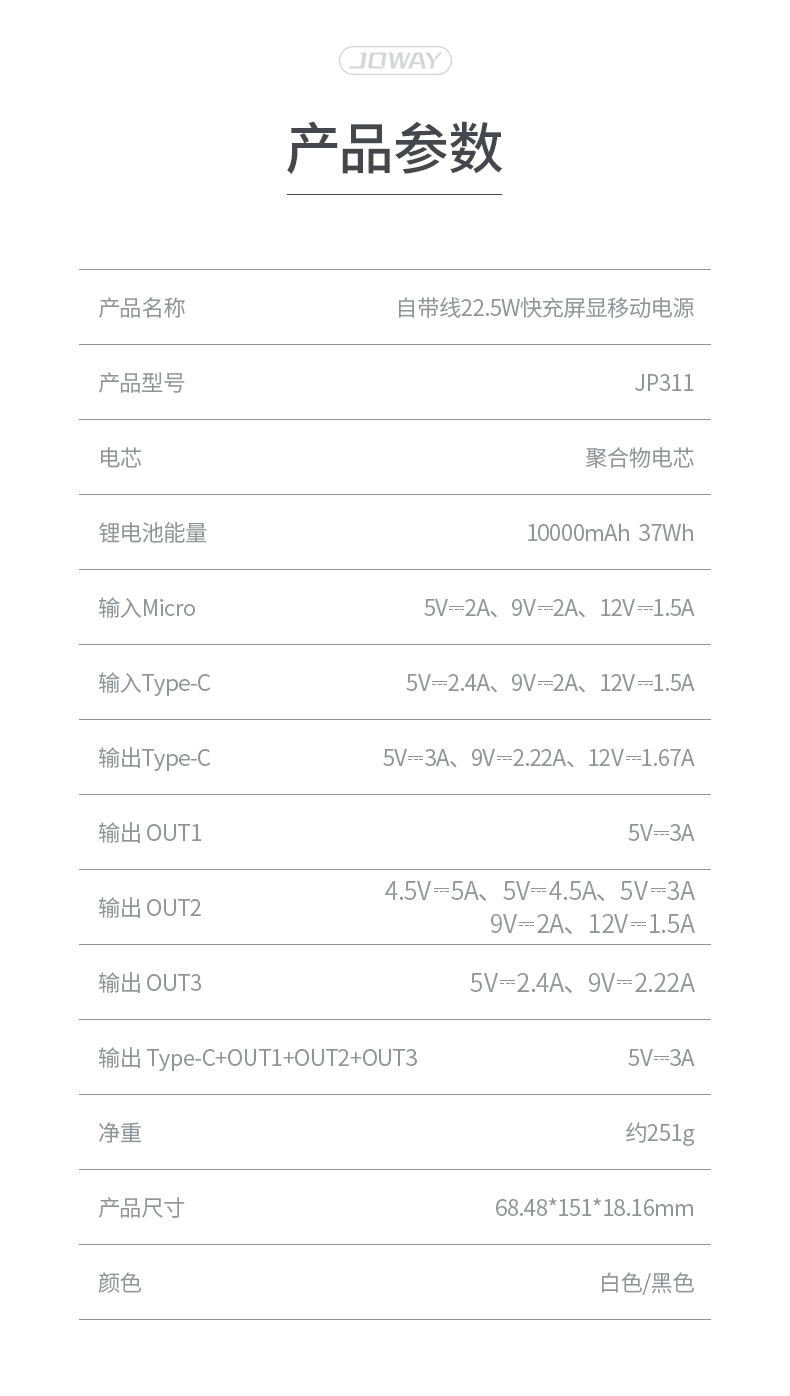 JP311 雙快充線移動電源