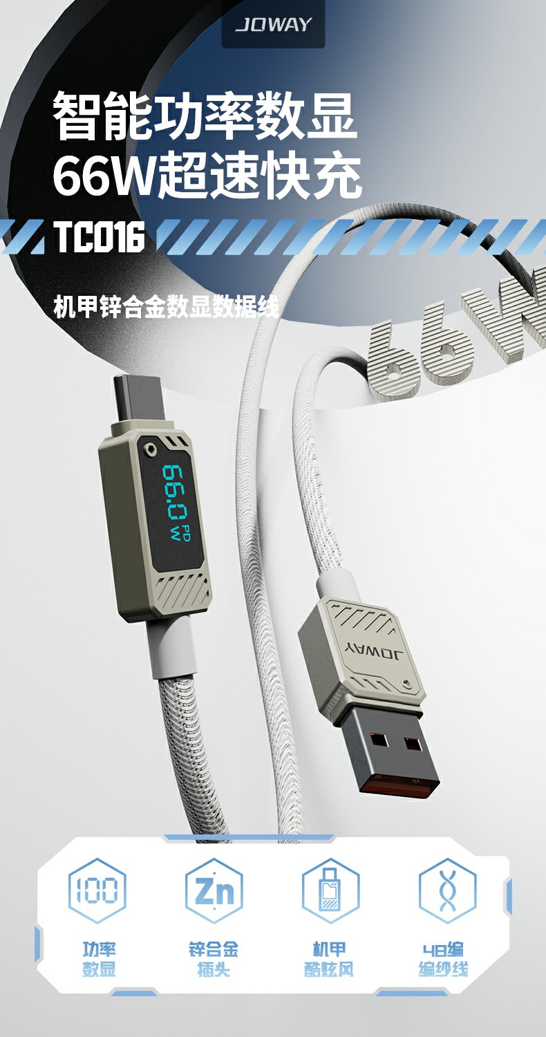 TC016 66w機甲鋅合金數顯數據線
