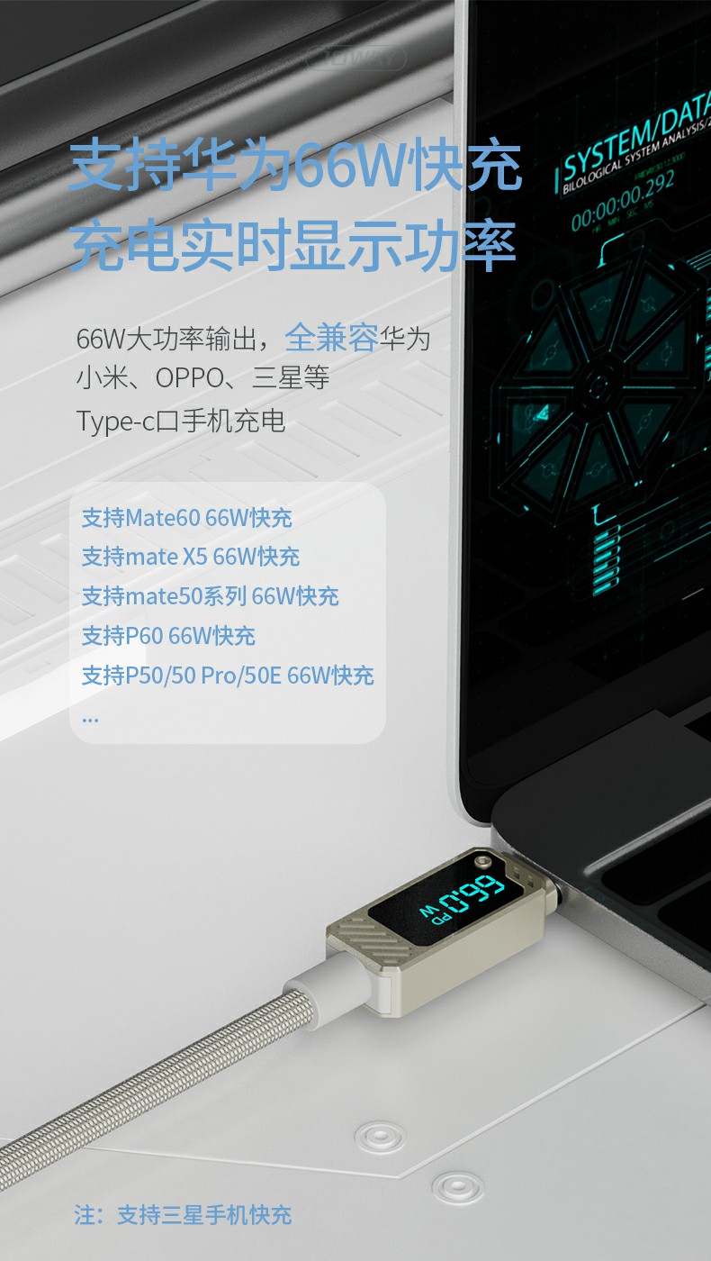 名稱:66w機甲鋅合金數顯數據線