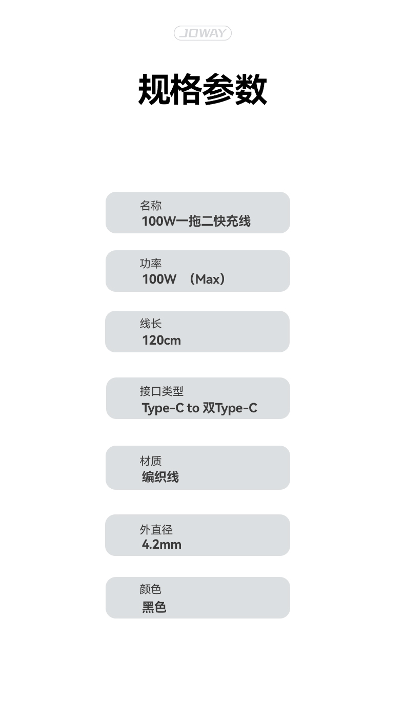 名稱:100W 一拖二快充線