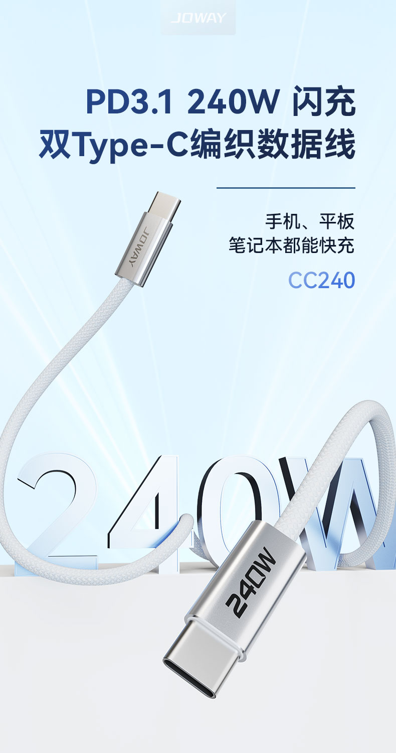 CC240 240W雙Type-C編織數據線