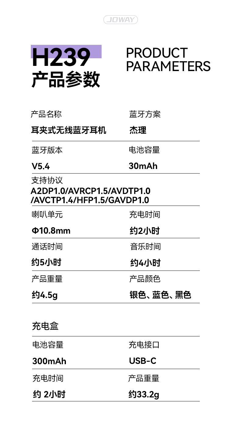 H239 耳夾式無線藍牙耳機