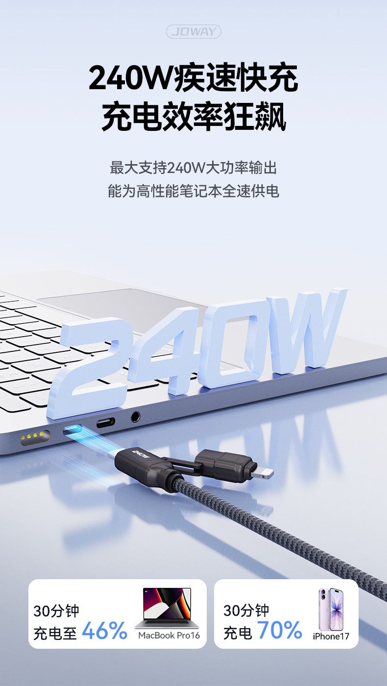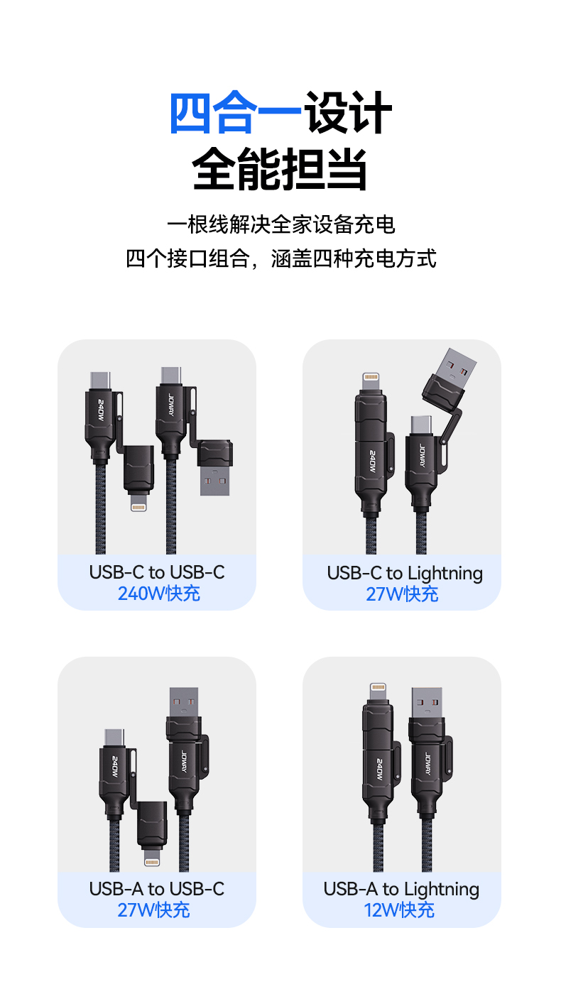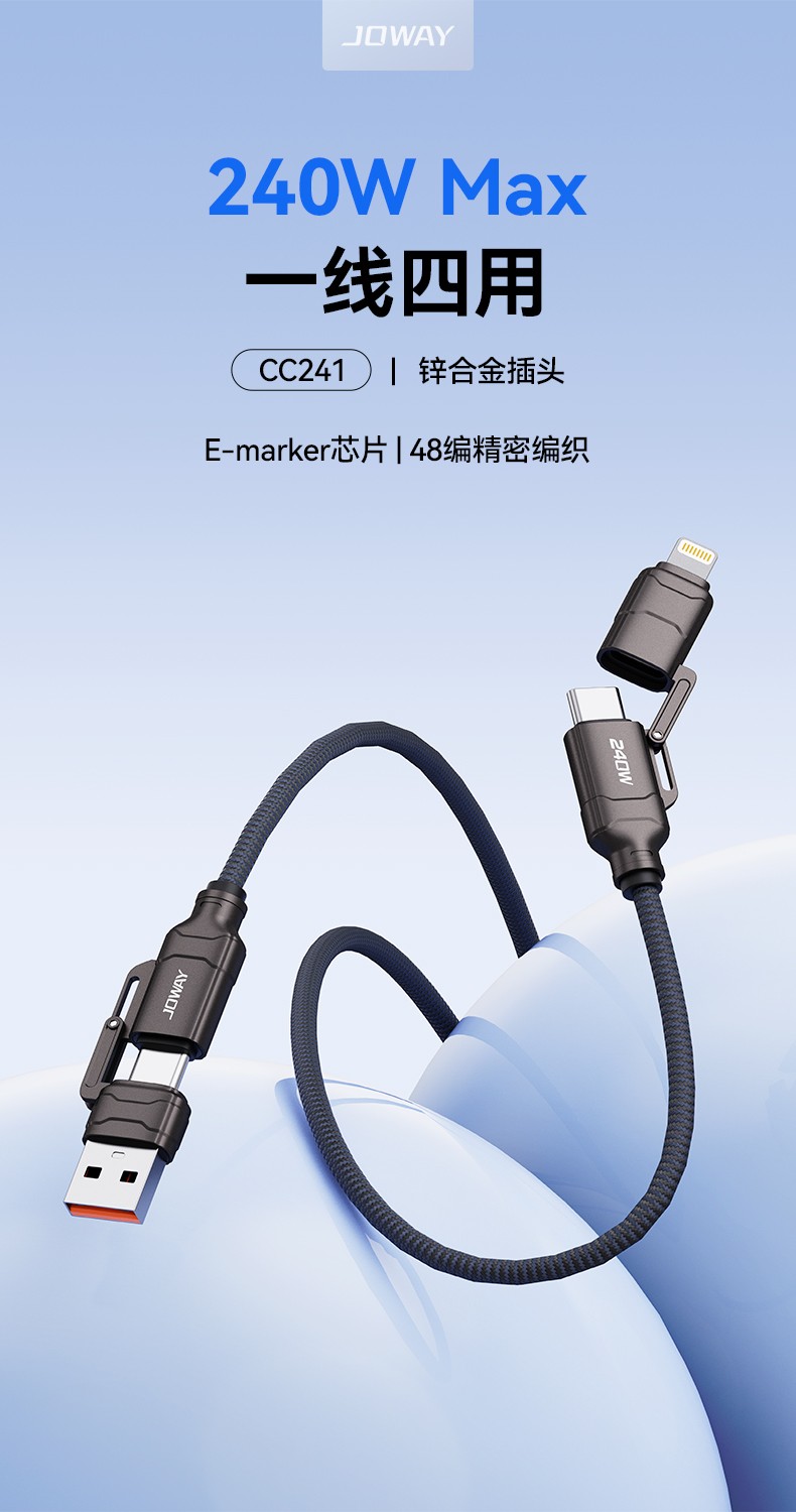 CC241 240W四合一鋅合金快充編織線