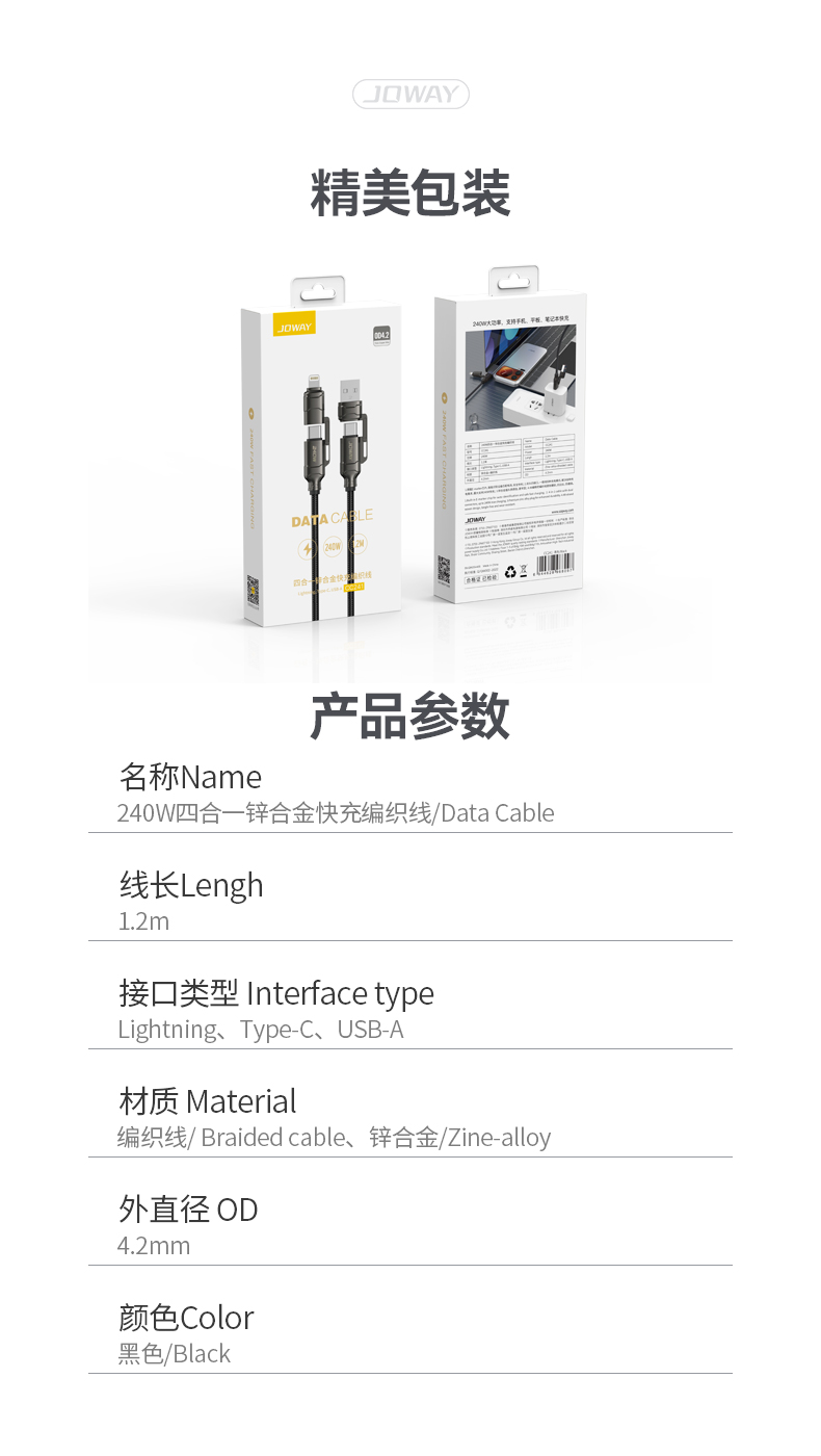 名稱:240W四合一鋅合金快充編織線