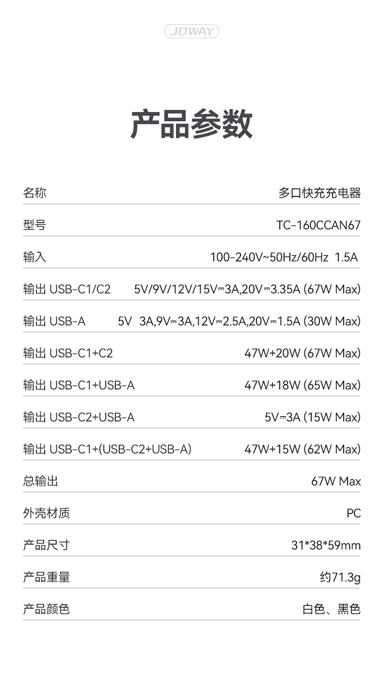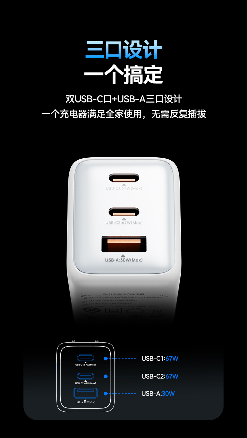 輸出USB-C1/C2:67W Max